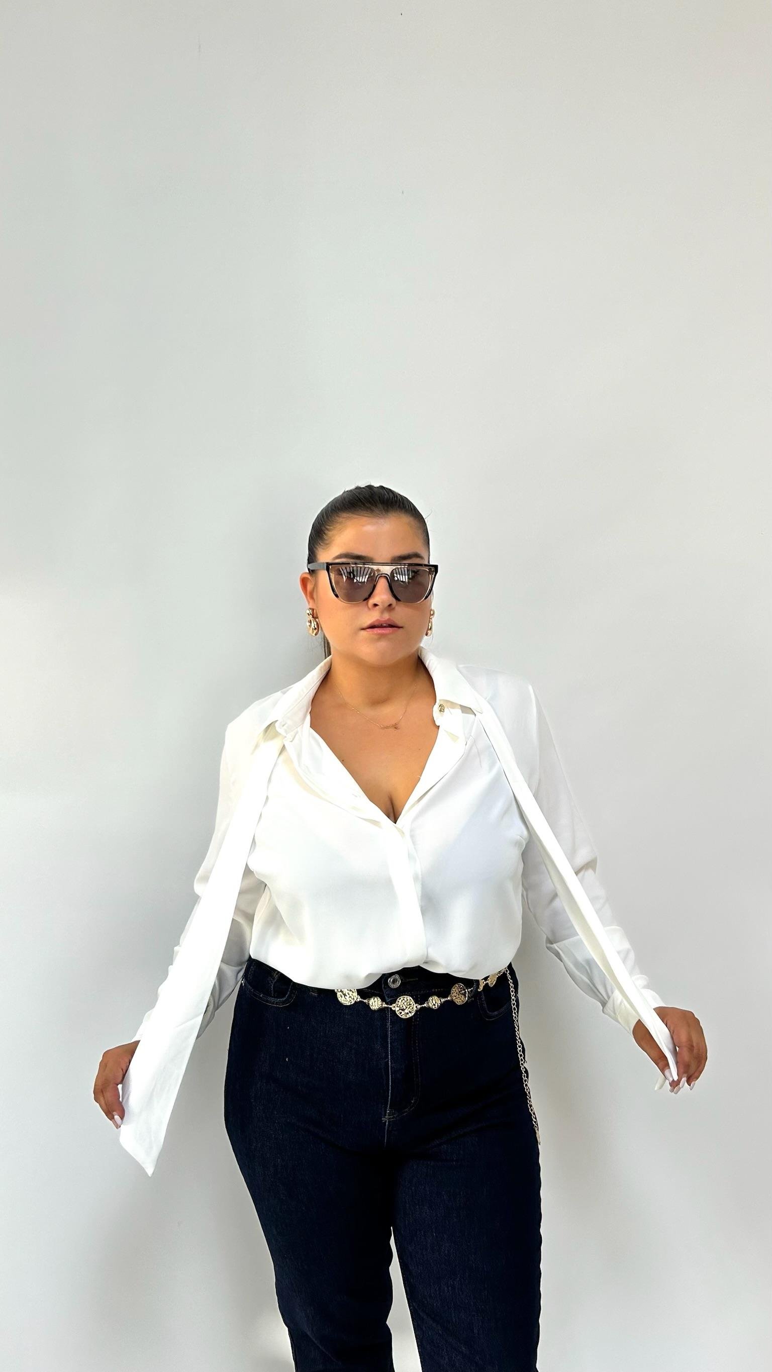 Beyaz Fonksiyonel Fular Detaylı Gömlek