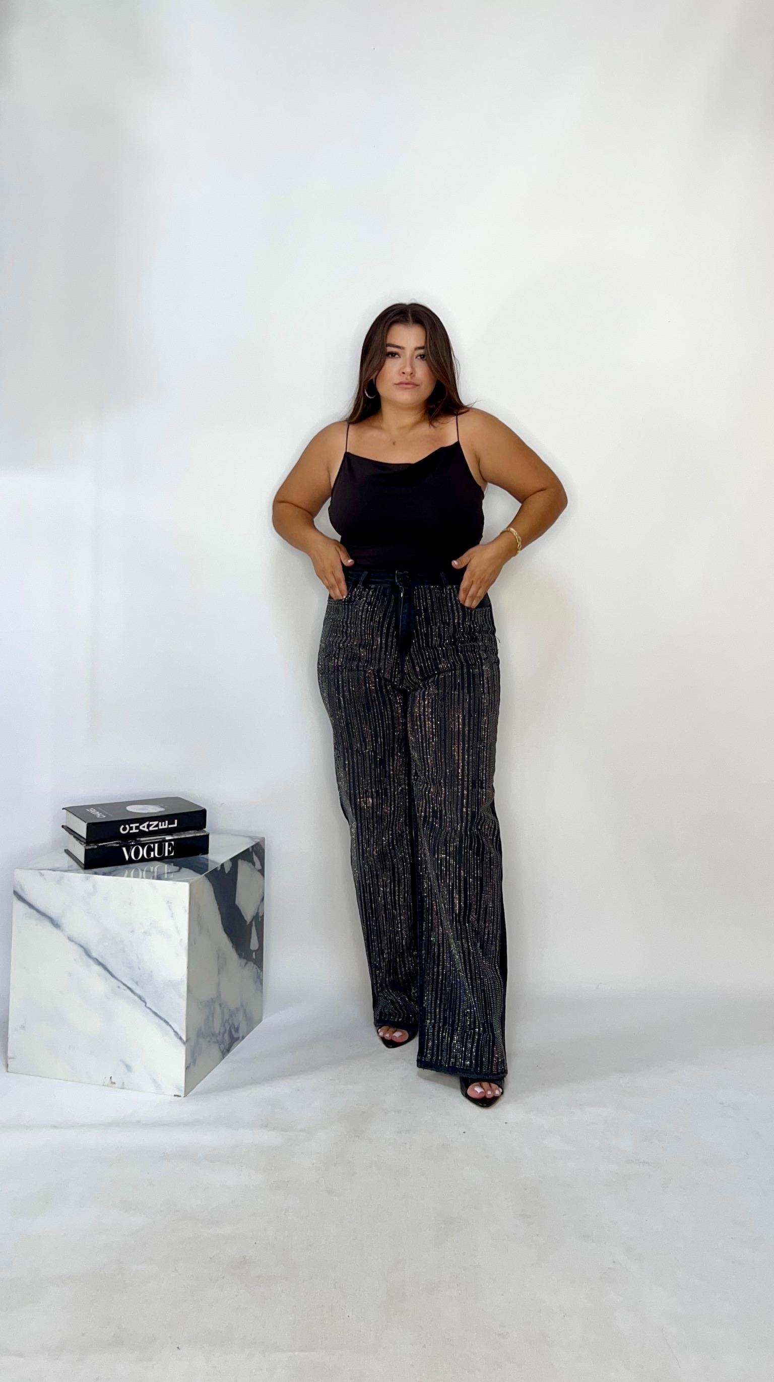 Toparlayıcı Likralı Taşlı Palazzo Jean