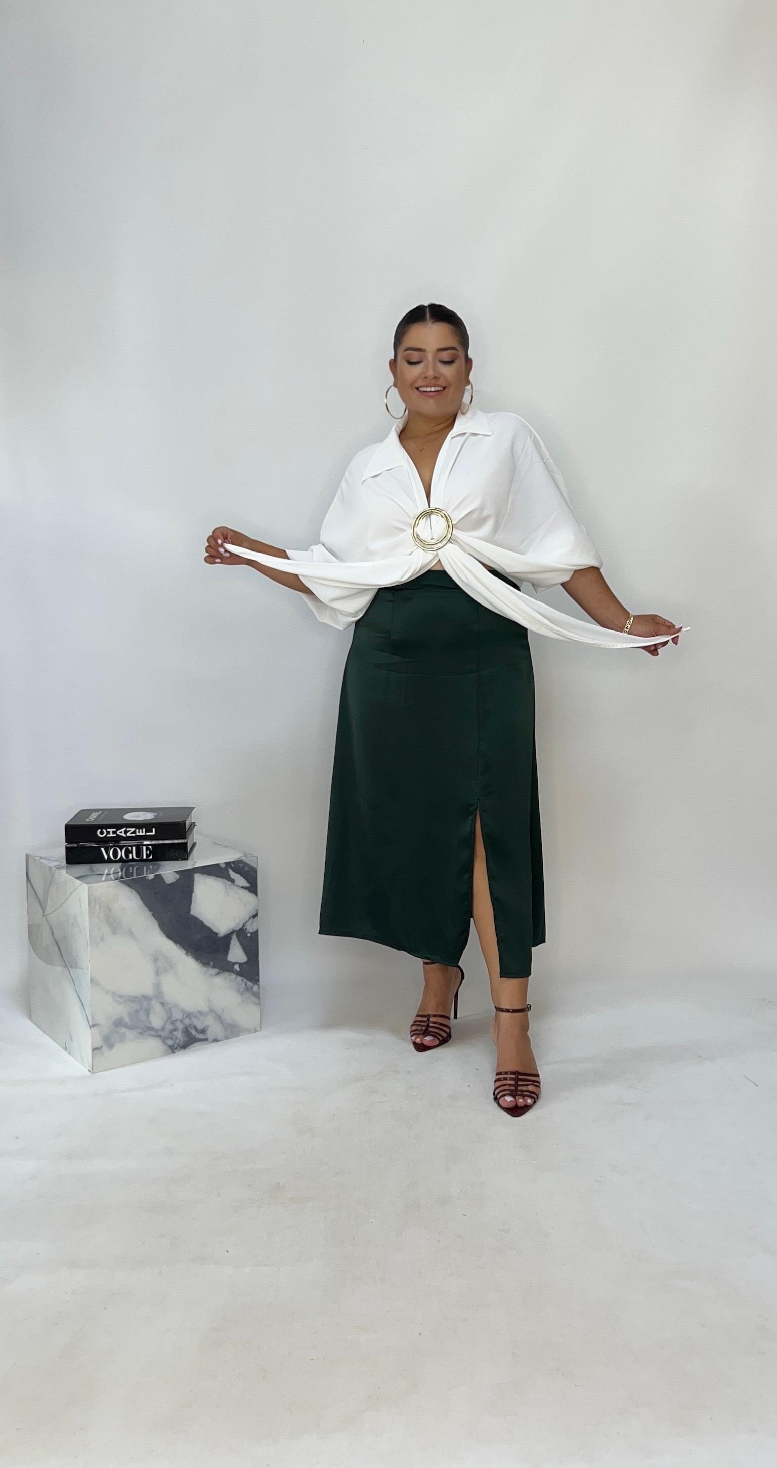 Zümrüt Yeşili Yırtmaçlı Saten Etek
