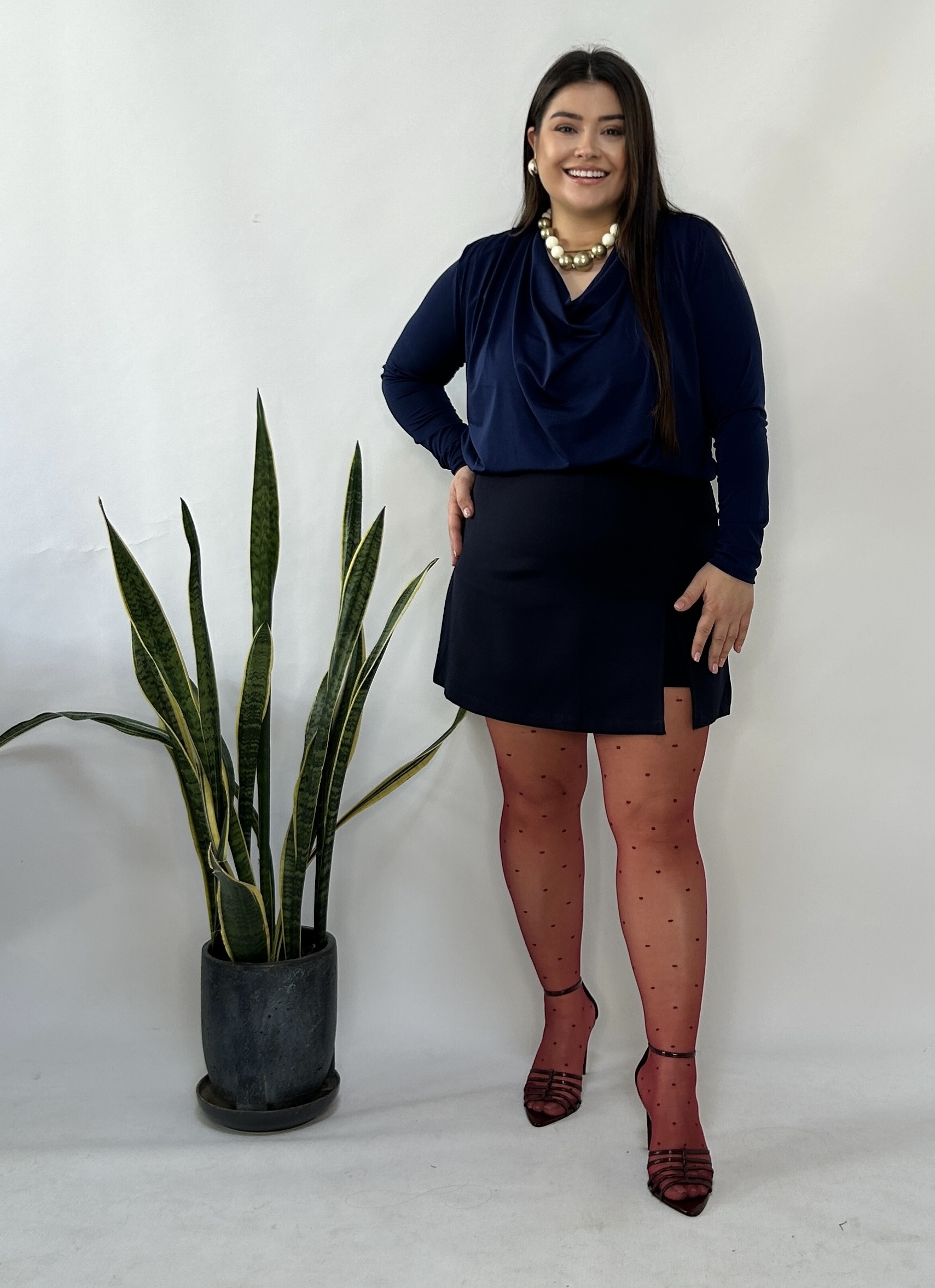 Lacivert Vatkalı Degaje Bluz