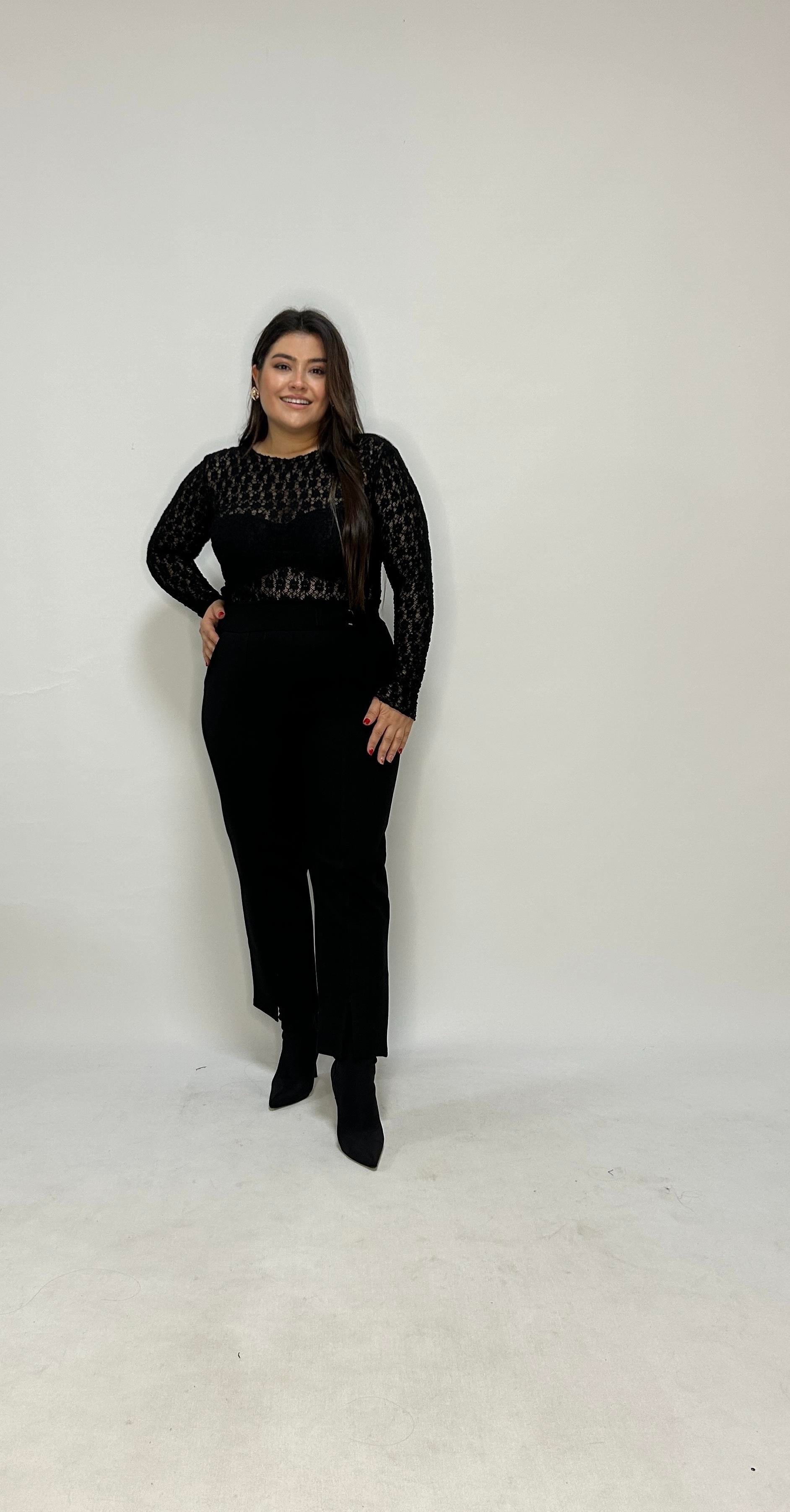 Şıklığı ve rahatlığı bir arada sunan büyük beden likralı dantel bluz, hem günlük hem de özel gün kombinleri için ideal bir parçadır.