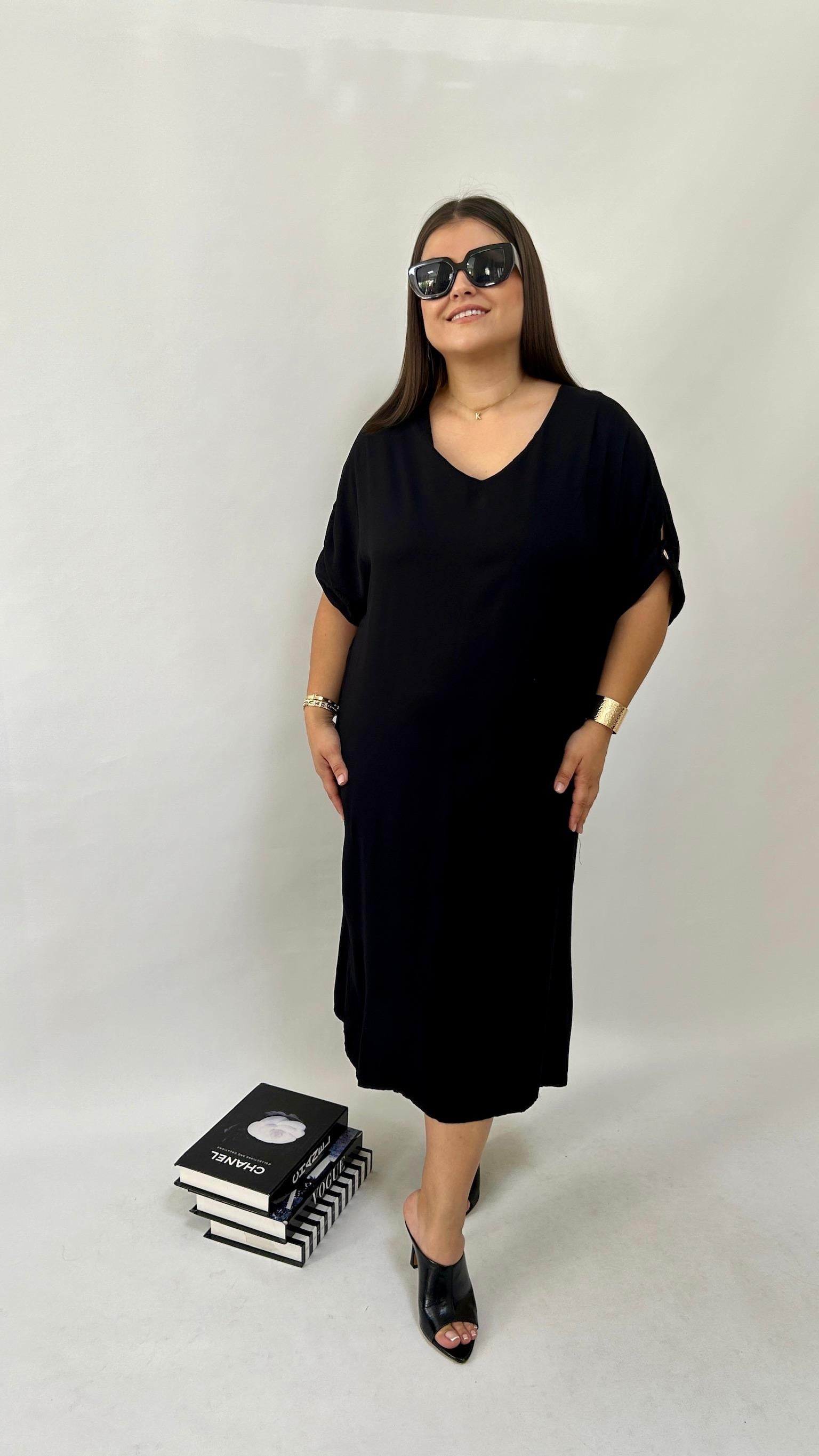 Siyah Dokuma Viskon Elbise