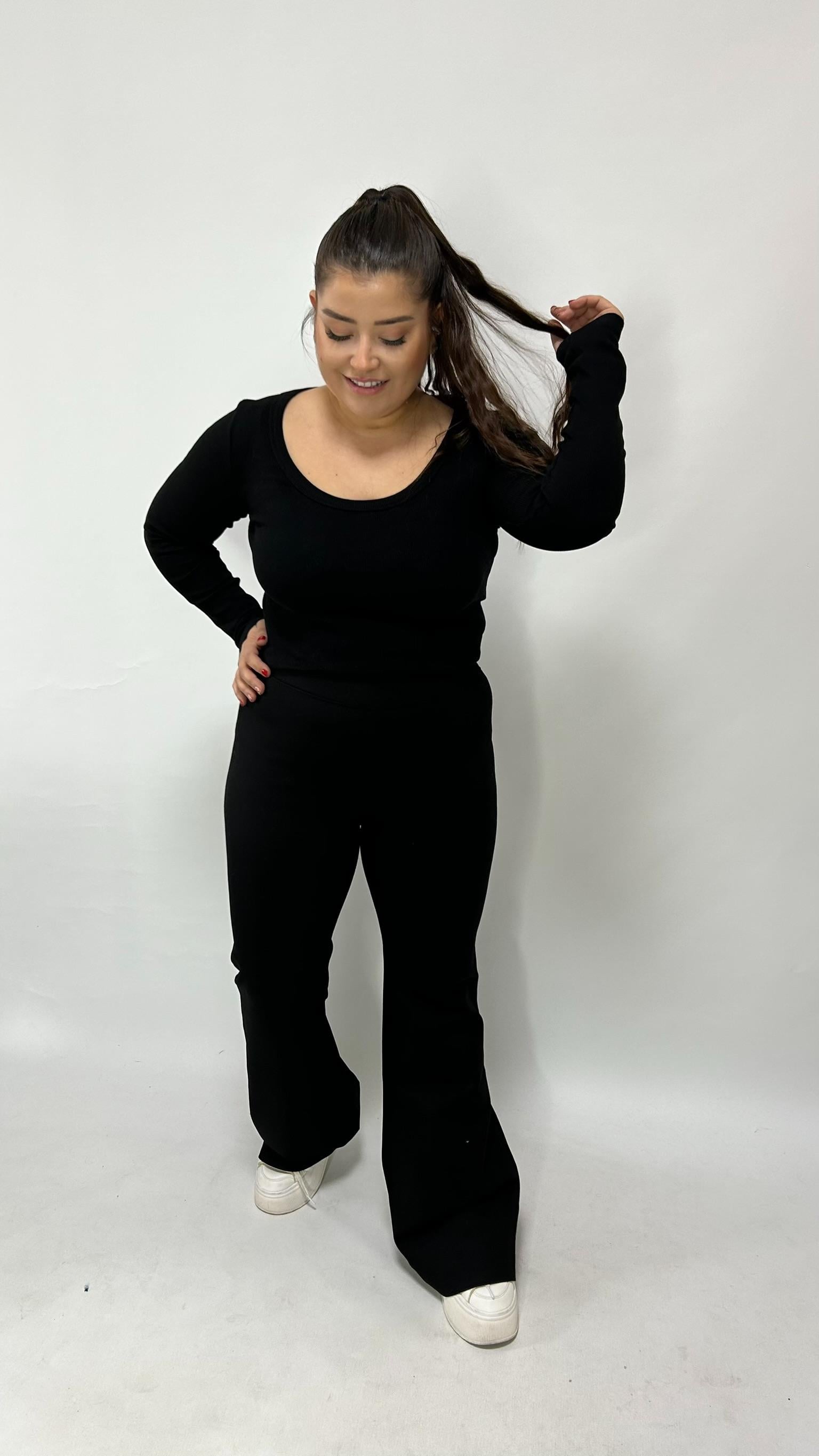 Siyah Toparlayıcı Çelik İspanyol Pantolon